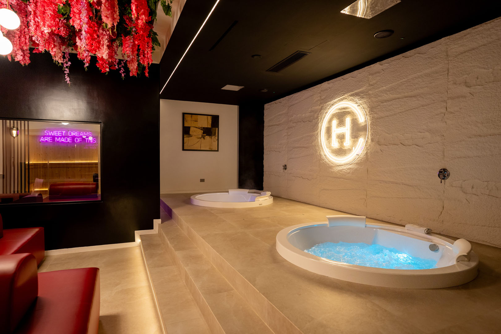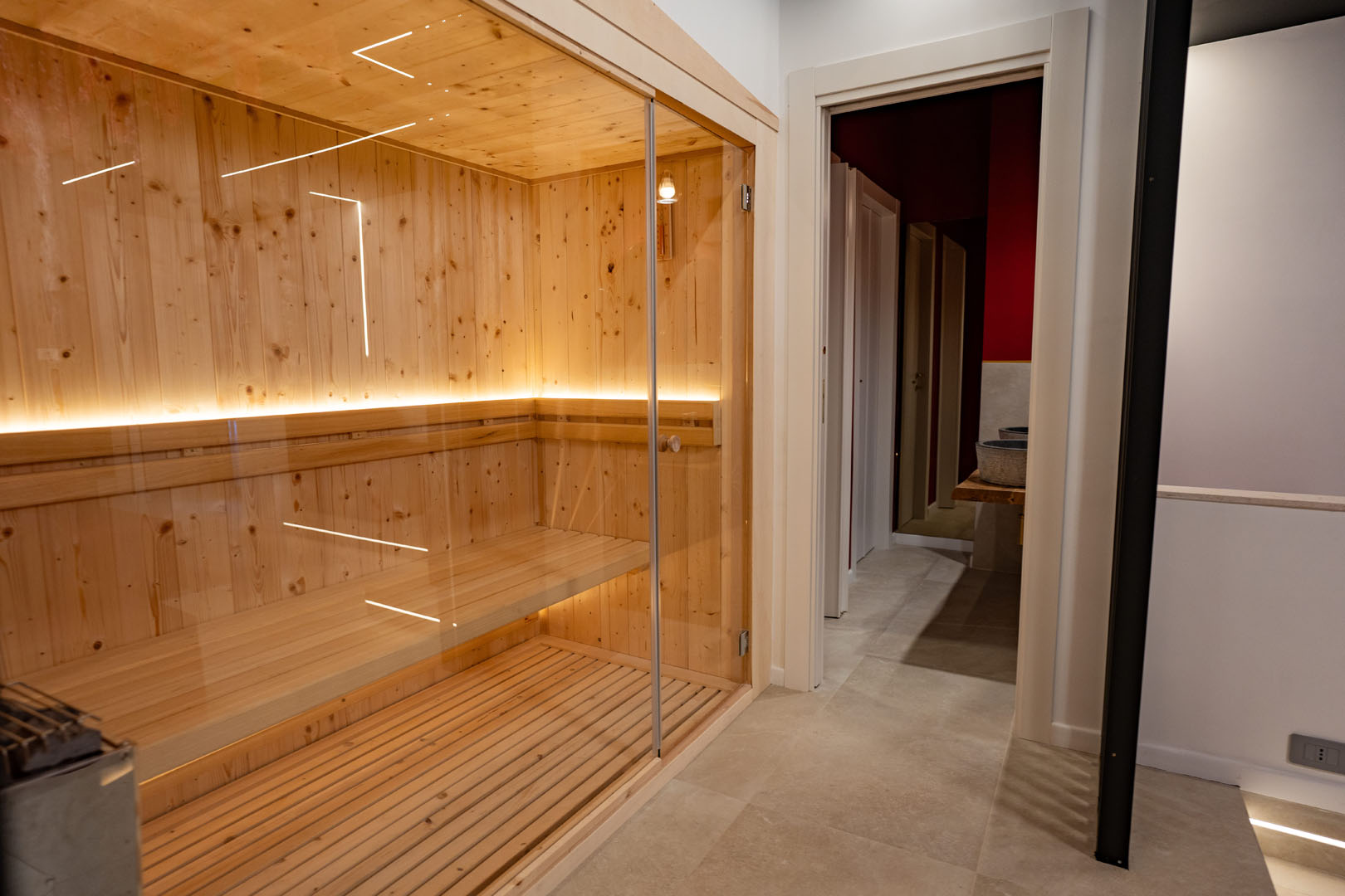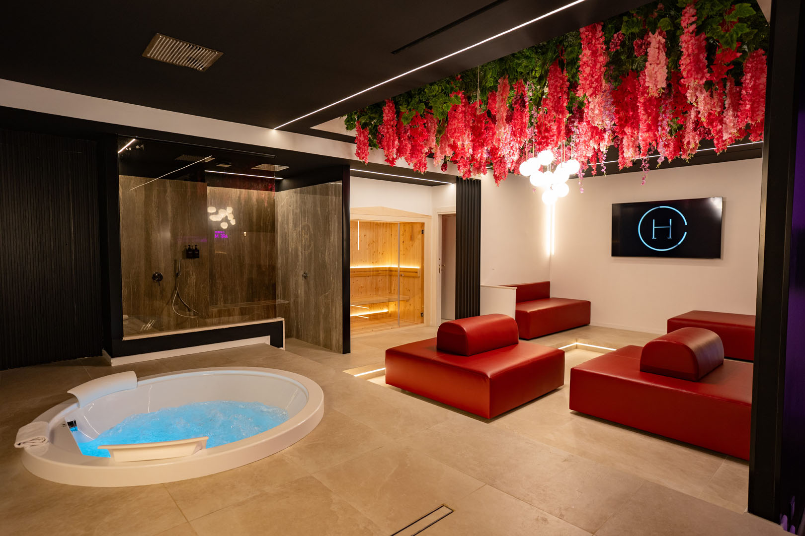Le vasche idromassaggio, la sauna finlandese e l’atmosfera intima della suite creano un’esperienza di benessere completa, ideale per staccare dalla routine quotidiana e vivere momenti di puro relax.