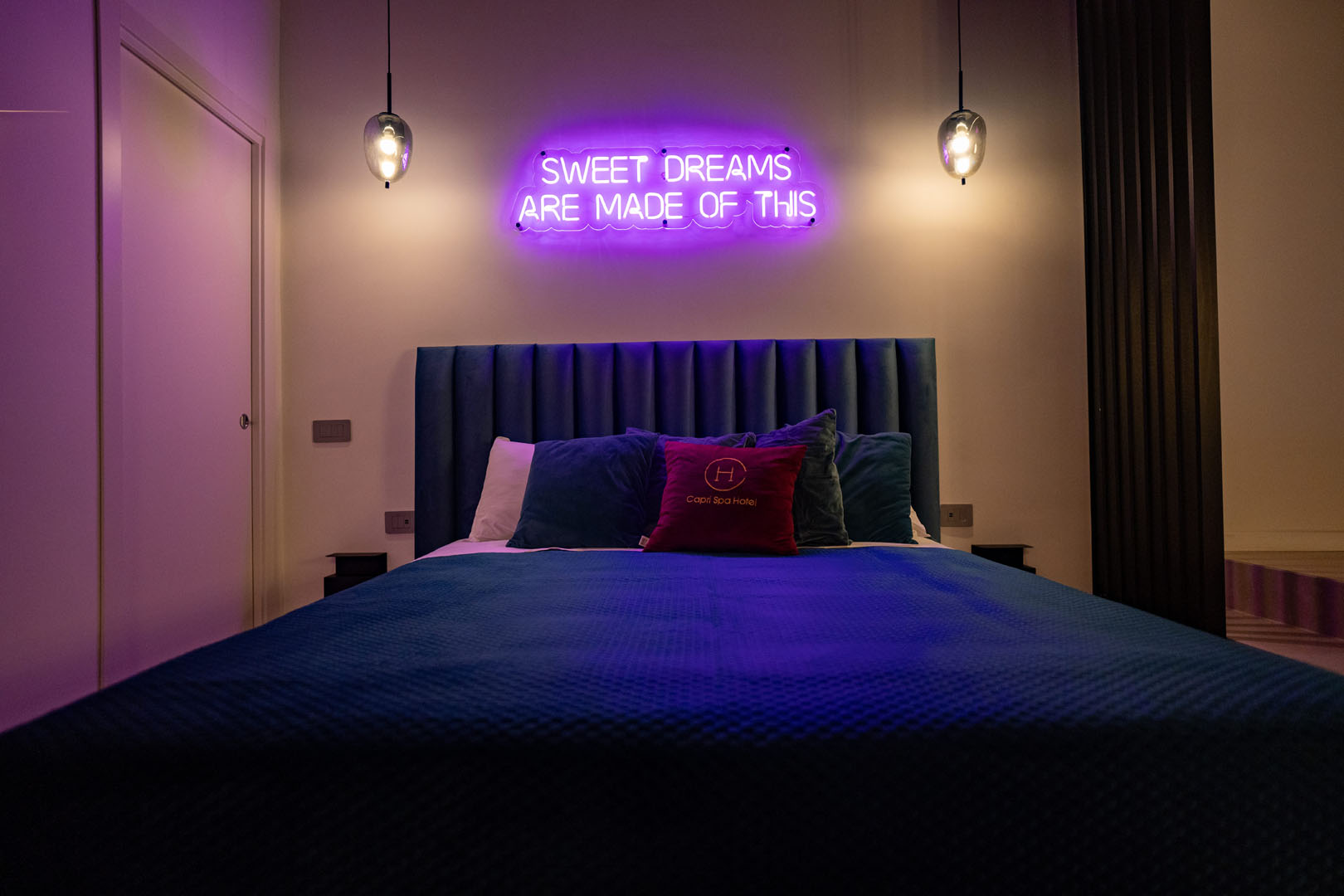 Nella Suite Dreams del Capri Spa Hotel puoi vivere un’esperienza unica: organizzare la tua festa privata in una spa esclusiva oppure trascorrere una notte romantica con la tua metà in un ambiente elegante e riservato.